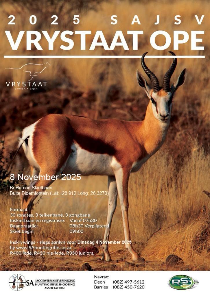 RS Sports Vrystaat Ope 2025 Inskrywings oop RS Sports Free State , Northern Free State 223 Aanlyn inskrywings oop Cradock Jaggeweer Ope aanlyn inskrywings Oop Cradock Jaggeweer 223 en 22LR aanlyn inskrywings Oop Eden/Joubertina .22 Rimfire/PCP Online entries open League Fees Registration and joining - Do it here online |