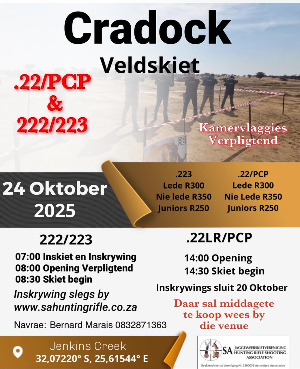Cradock Jaggeweer 223 en 22LR aanlyn inskrywings Oop![]() LET OP U MOET APART INSKRYF VIR DIE 22LR, 223 en Opes>>AANLYN INSKRYWINGS 222/223 Hier<<