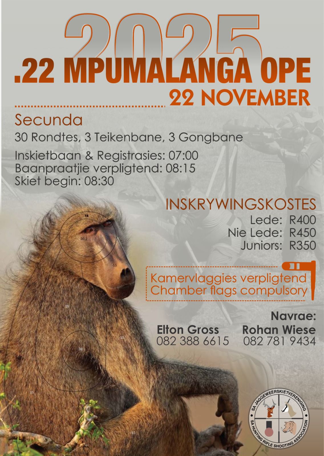 What the SA Hunting Rifle Shooting Association is about League Fees Registration and joining - Do it here online Mpumalanga 22LR/PCP Open binnekort Wildman Limpopo Open is back Vrystaat Ope 2025 Inskrywings binnekort Eden/Joubertina .22 Rimfire/PCP Online entries open |