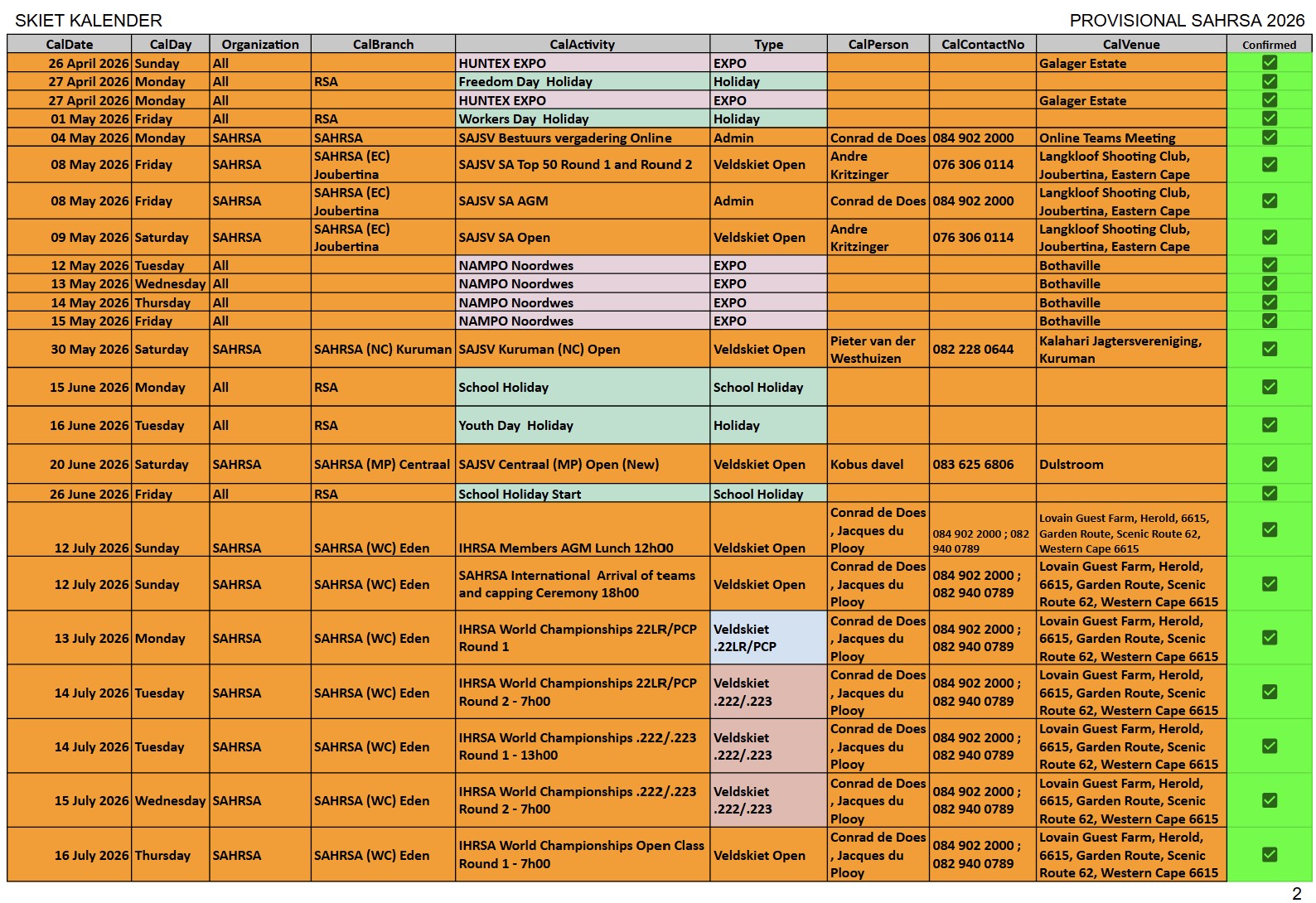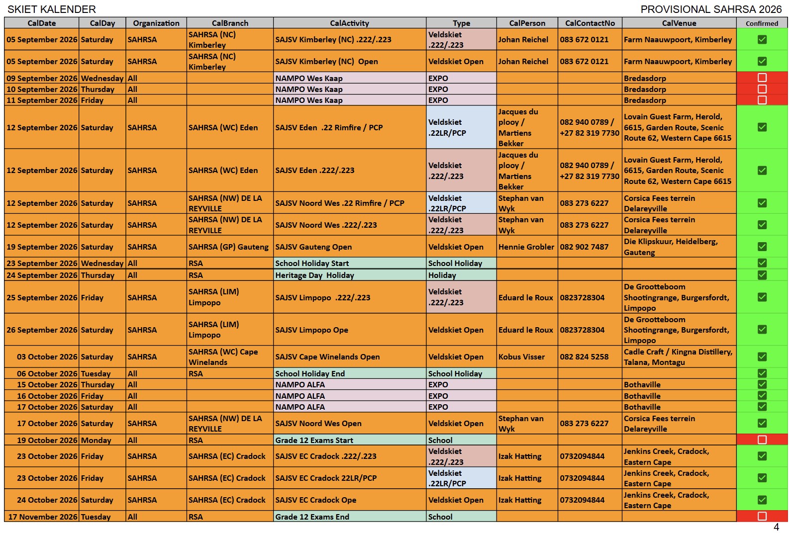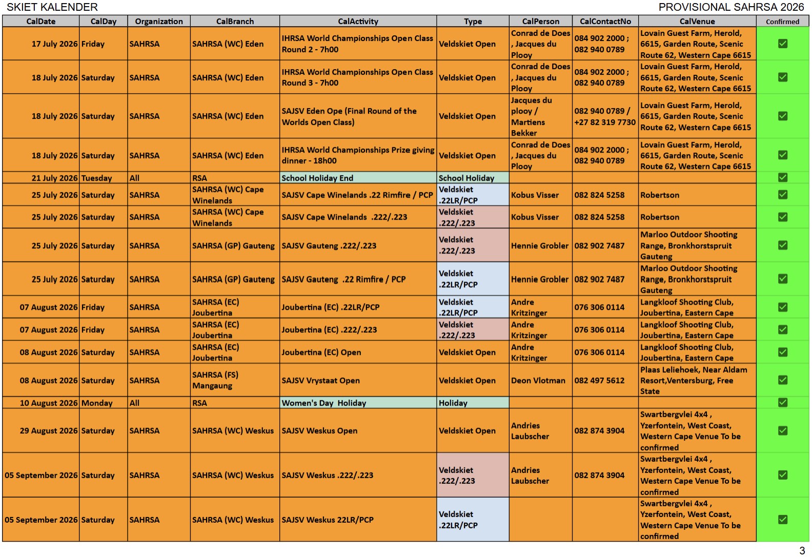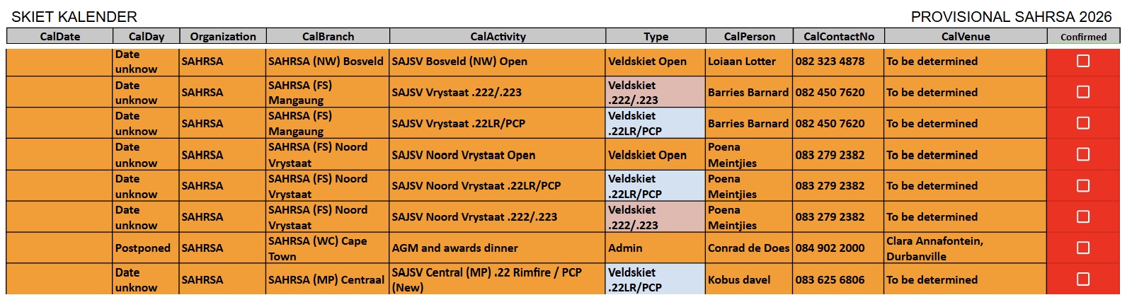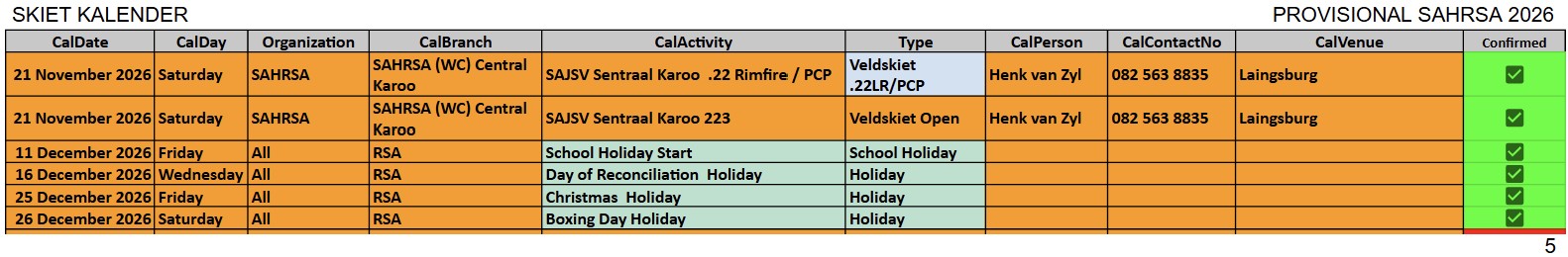 SAJSV DATUMS SAJSV Datums - 2026 - Dates SAHRSA (PROVISIONAL RELEASE update 16 Febraury 2026)New updated : 2026 Provisional calender release. Contact your local organiser /district manager for queries and details relating to local events.New updated : Date changed 25 July 2026 Cape WInelans (Boland) (WC) 222/223 and 22LR, Robertson New updated : Date changed 12st September 2026 Eden (WC) 222/223 and 22LR, Louvaine